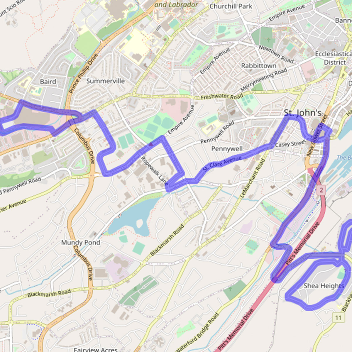 Avalon Mall | Health Sciences Centre | Memorial University | Higgins Line | Newfoundland Drive | Torbay Road | Stavanger Drive