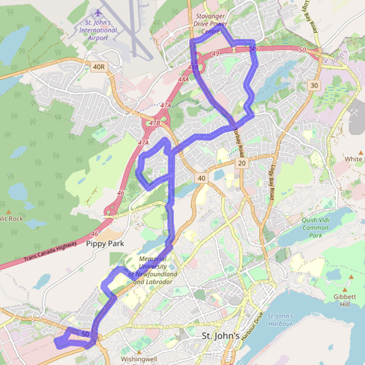 St. John's Airport | Airport Heights | Majors Path | Torbay Road | Newfoundland Drive | Marine Institute | Memorial University